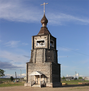 Новая колокольня была выстроена к 1 августа 2001 года. К храмовому празднику села - Успению Пресвятой Богородицы (15/28 августа) - были подняты на звонницу новые колокола, отлитые на Урале. Звонница имеет семь колоколов и два титановых била, воспроизводящих звучание колоколов в 2000 пудов и 300 пудов (32 тонны и 4,8 тонны соответственно). Новая колокольня возведена не в том же виде и не на том же месте, что и старая, причем при ее строительстве применен нетрадиционный для русского зодчества прием: четверик поставлен на восьмерик. Это строительство было оценено неоднозначно (см. статью иеромонаха Митрофана (Баданина) "Колокольный звон над Варзугой"). Колокольня входит в Успенский комплекс наряду с Успенской и Афанасьевской церквями. |