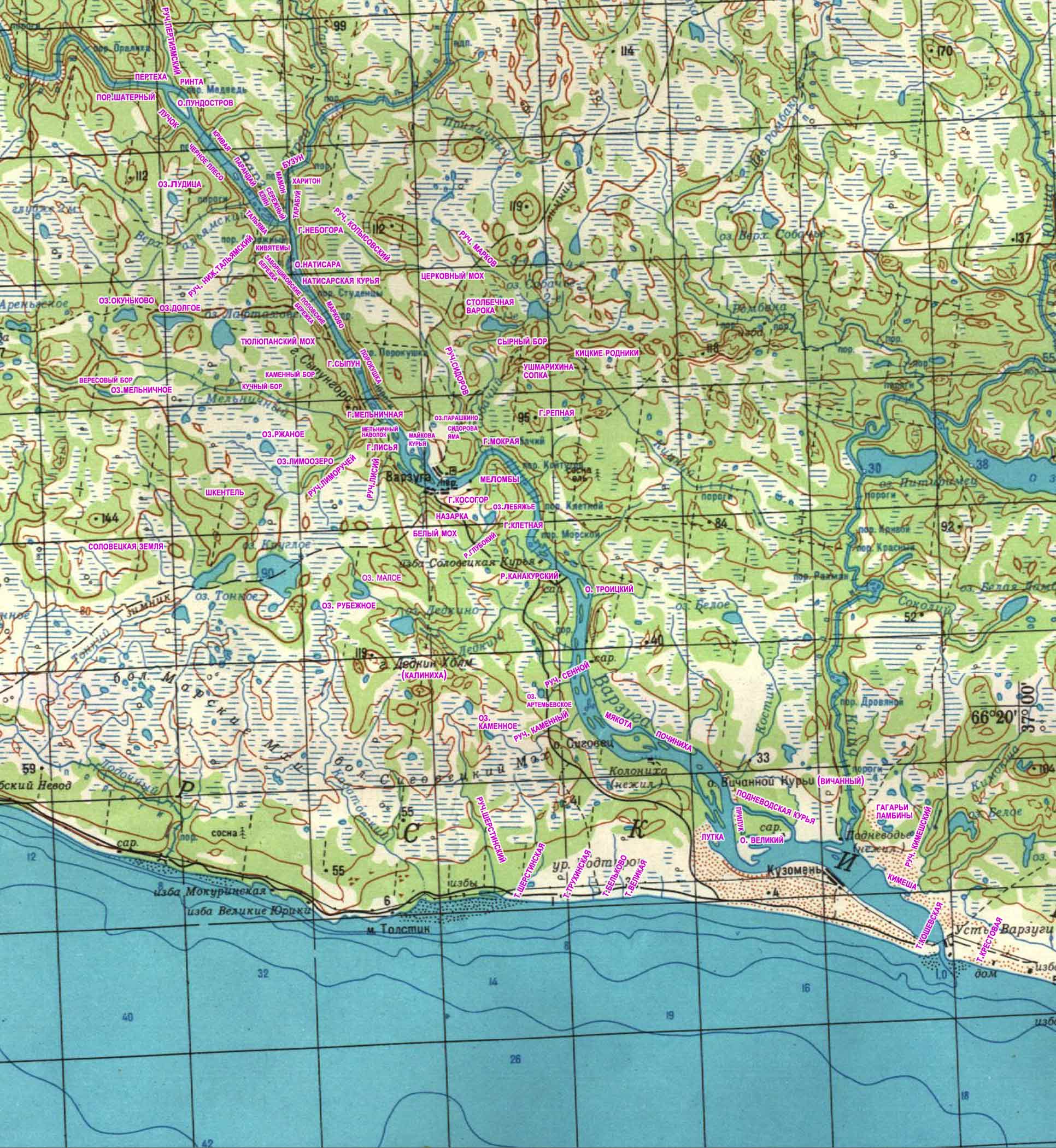 Карта окрестностей Варзуги (с топонимами).